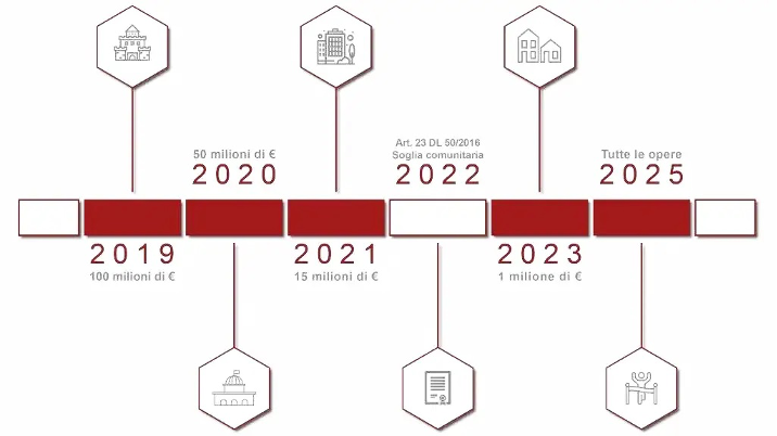 Tant’è che le amministrazioni pubbliche stanno imponendo sempre più l’utilizzo del BIM nei propri progetti. Infatti, in Italia con l’approvazione del DM 560 del 2017 si è stabilito le modalità e i tempi di progressiva introduzione del metodo BIM per l’edilizia e le infrastrutture, fino ad arrivare ad un completo utilizzo nel 2025 (salvo proroghe e/o deroghe).