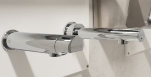 The 02584/R electronic basin/sink mixer with presence detection activation is suitable for plasterboard walls, it is equipped with vandal-proof closure after 1 minute and with an anti-legionella system ideal for hospital environments that automatically delivers a flow of water every 24h from the last use.