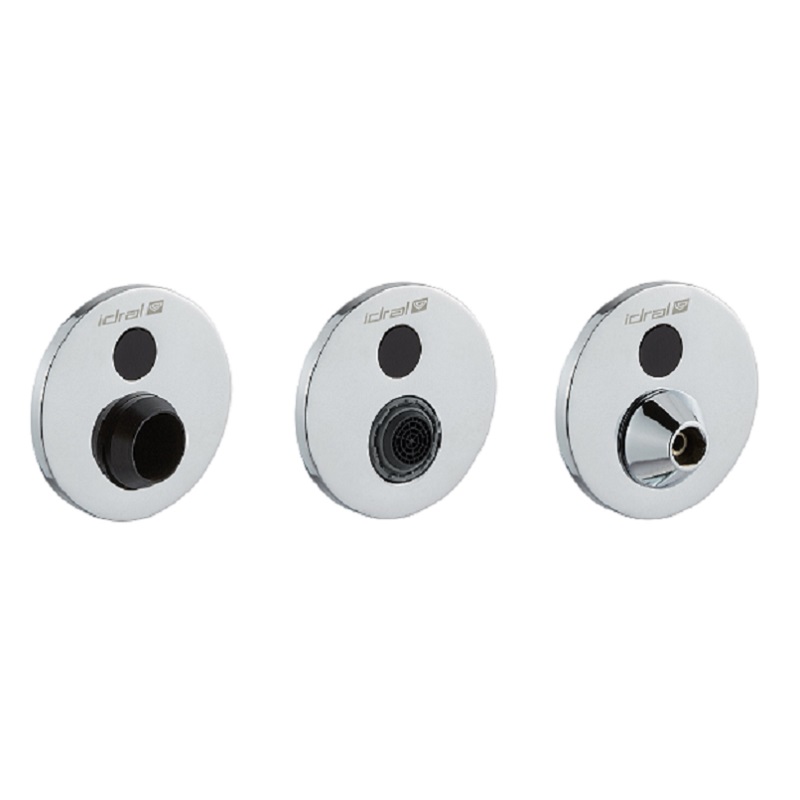 Kit combinable mural pour lavabo multifonctionnel, équipé avec distributeur d’eau, distributeur de savon et sèche-mains; avec capteurs infrarouges et alimentation sur secteur 230V