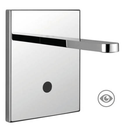 Rubinetto elettronico lavabo a fotocellula da incasso a parete con bocca di erogazione.