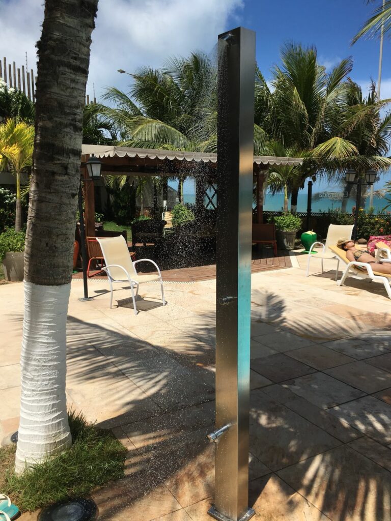 Oltre all’aspetto estetico, le docce esterne offrono funzionalità avanzate per garantire un’esperienza di lusso. Sistemi di controllo dell’acqua intuitivi e personalizzabili consentono agli utenti di regolare temperatura e pressione con facilità, mentre sistemi di illuminazione integrati creano atmosfere suggestive durante l’uso serale. Alcuni modelli possono anche essere dotati di rubinetti temporizzati, che oltre a garantire un perfetto controllo dell’acqua, consentono di risparmiare acqua. L’utilizzo di tali dispositivi non solo assicura un flusso d’acqua ottimale durante l’uso della doccia, ma contribuisce anche alla conservazione delle risorse idriche, promuovendo un approccio sostenibile e responsabile al benessere. Inoltre, le docce solari (come quelle della foto) offrono un’opzione ecologica e sostenibile. Sfruttando l’energia solare, queste docce sono dotate di sistemi di riscaldamento che consentono di godere di acqua calda senza bisogno di utilizzare energia elettrica aggiuntiva. Oltre a offrire un’esperienza di lusso, le docce solari contribuiscono al risparmio energetico e alla riduzione dell’impatto ambientale.
