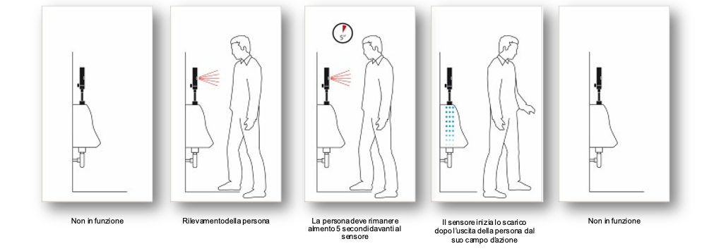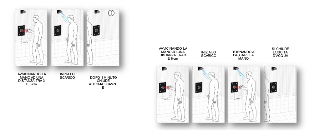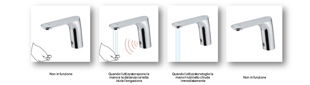 È importante notare che i sensori a fotocellula non si attivano semplicemente con la presenza di una persona di fronte a essi. Le logiche di funzionamento variano in base al tipo di rubinetto: