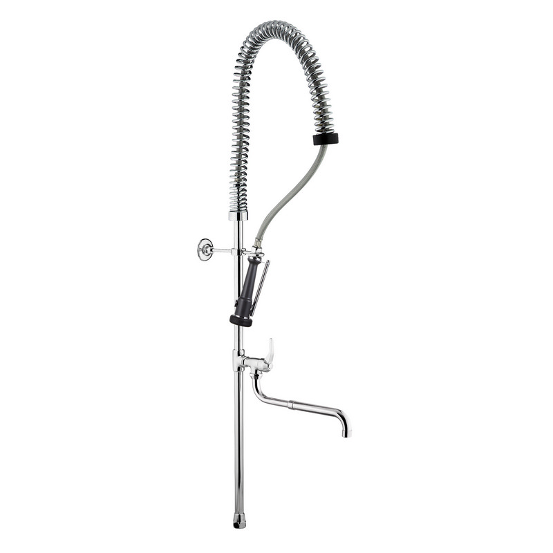 Il Gruppo doccia prelavaggio stoviglie modello 09420 di Idral è ideale per l’installazione su rubinetti o miscelatori da piano, con un’altezza di 1200 mm. Caratterizzato da un rubinetto a dischi ceramici, offre una bocca di erogazione girevole a “S” telescopica, regolabile tra 200 e 300 mm, realizzata in tubo ottone di diametro 18 mm. La molla in acciaio inox garantisce durata e resistenza, mentre il kit di fissaggio a muro permette un’installazione stabile e sicura.