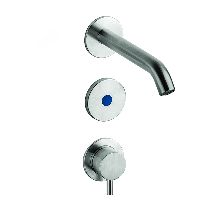 Miscelatore elettronico da incasso per lavabo in AISI 316L con bocca di erogazione
