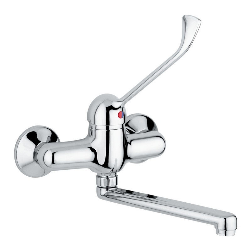 Miscelatore monocomando a parete modello 02400 di Idral, ideale per ambienti domestici o professionali. Dotato di cartuccia monocomando a dischi ceramici, garantisce un comando fluido e preciso. La leva clinica facilita l’utilizzo, rendendolo perfetto anche per chi necessita di un controllo ergonomico e accessibile. La bocca girevole da 200 mm offre massima praticità e funzionalità per il lavello, adattandosi a diverse esigenze.