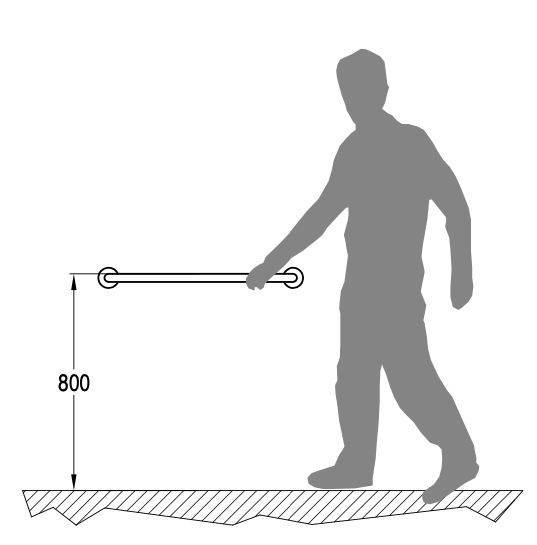 Nei servizi igienici dei locali aperti al pubblico è necessario prevedere e installare il corrimano in prossimità della tazza wc, posto ad altezza di cm 80 dal calpestio, e di diametro cm 3 – 4; se fissato a parete deve essere posto a cm 5 dalla stessa.