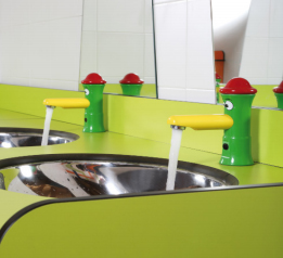 I rubinetti della serie KIDS sono colorati personaggi che rendono l’uso del bagno più piacevole e sicuro… e lavarsi le mani diventa un gioco.
