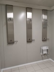 Abbiamo sviluppato un pannello doccia “su misura” per un’azienda leader di Treviso, specializzata in prefabbricati modulari e componibili con soluzioni personalizzate. L’azienda ha installato una struttura prefabbricata per uno spogliatoio a servizio di un impianto sportivo a Ponzano Veneto e ci ha coinvolti nello sviluppo dei pannelli doccia della struttura.