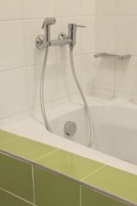 I Miscelatori a parete serie EASY (articoli 02405/LN) con cartuccia monocomando e doccetta igienica in plastica cromata con comando a leva corta e limitatore 4 l/min.