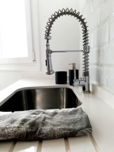 È il caso di questa casa di Tenerife dove per la cucina recentemente riformata è stato scelto il Miscelatore monocomando con doccia dual jet ad attacco magnetico, che è una revisione dei miscelatori per cucine professionali concepita per utilizzo domestico. La prima cosa che ha chiamato l’attenzione di questo rubinetto è il disegno semplice e quasi industriale che dava carattere al disegno minimalista della cucina e richiamava i dettagli metallici dell’ambiente. Ma questo rubinetto ha delle prestazioni che vanno molto oltre la bellezza del disegno. Infatti, questo miscelatore professionale specifico per cucine è molto più robusto di un rubinetto tradizionale.